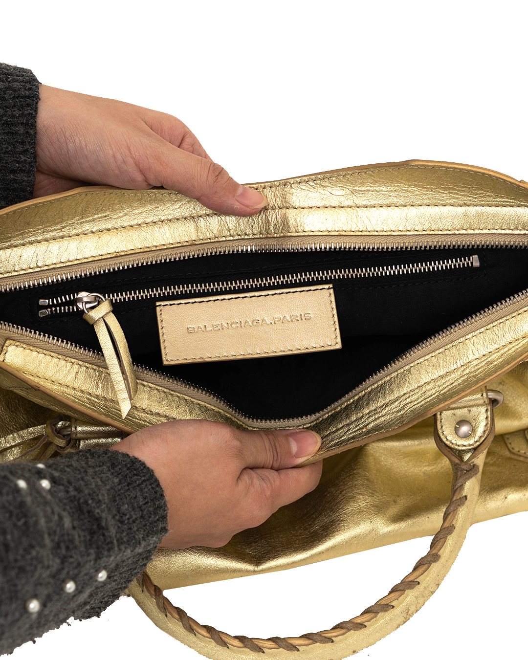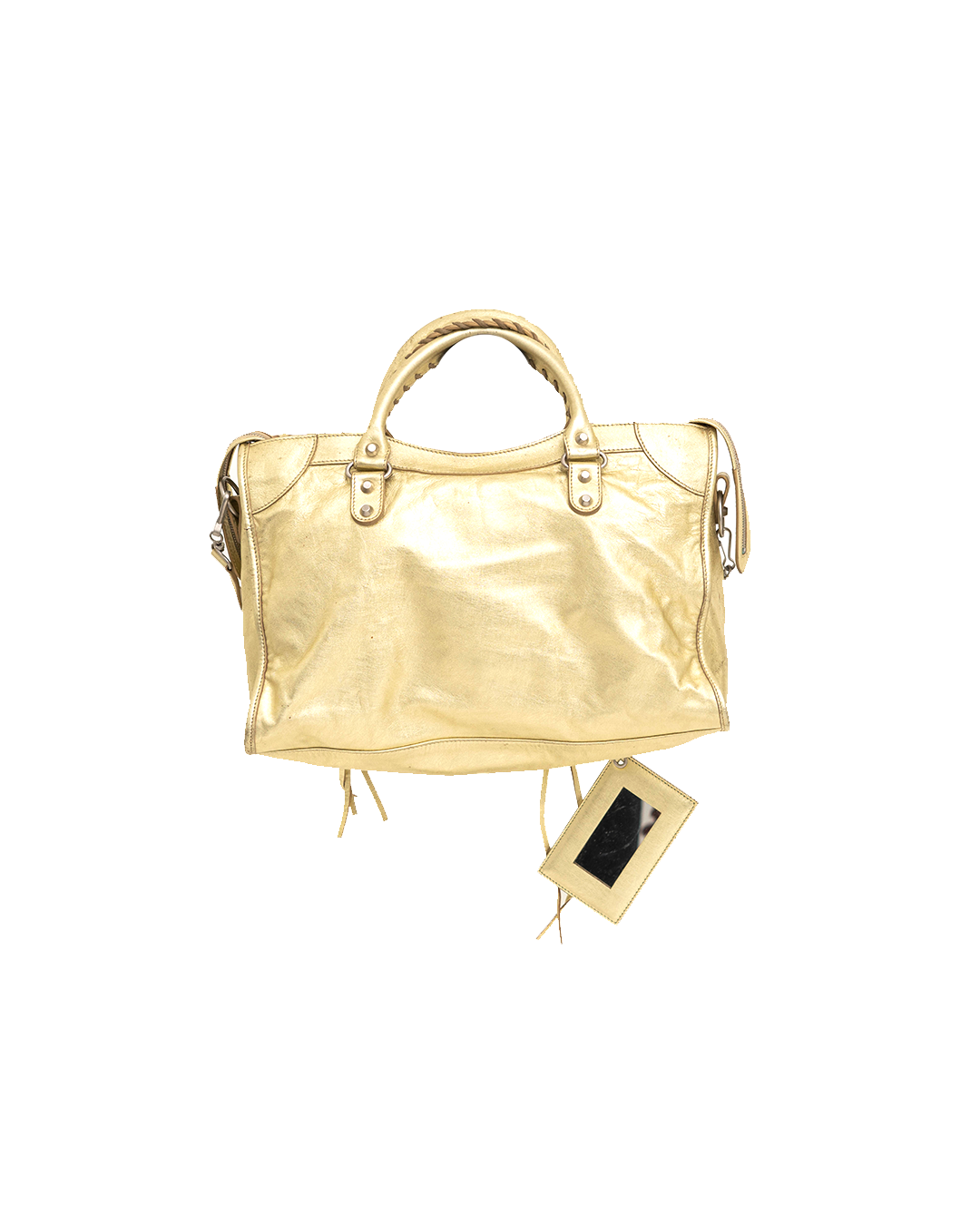 BALENCIAGA Classic City Bag in Metallic Gold Finish