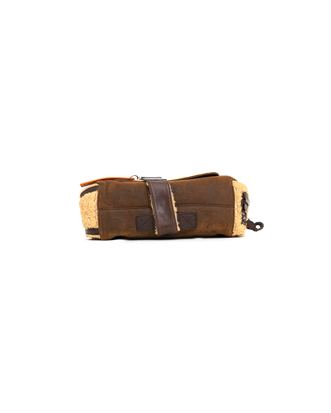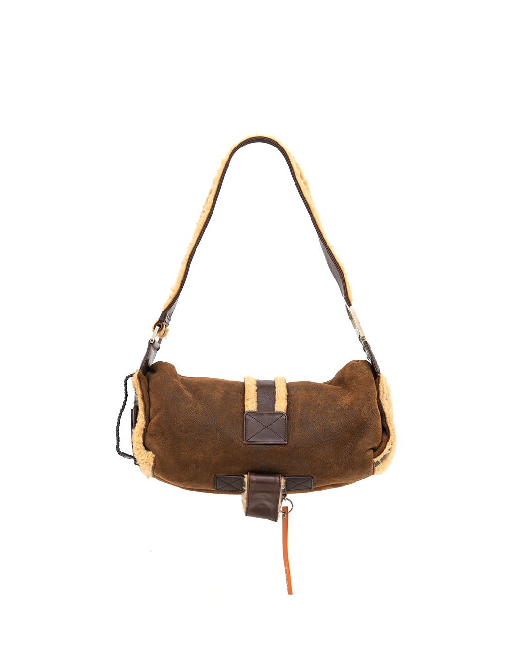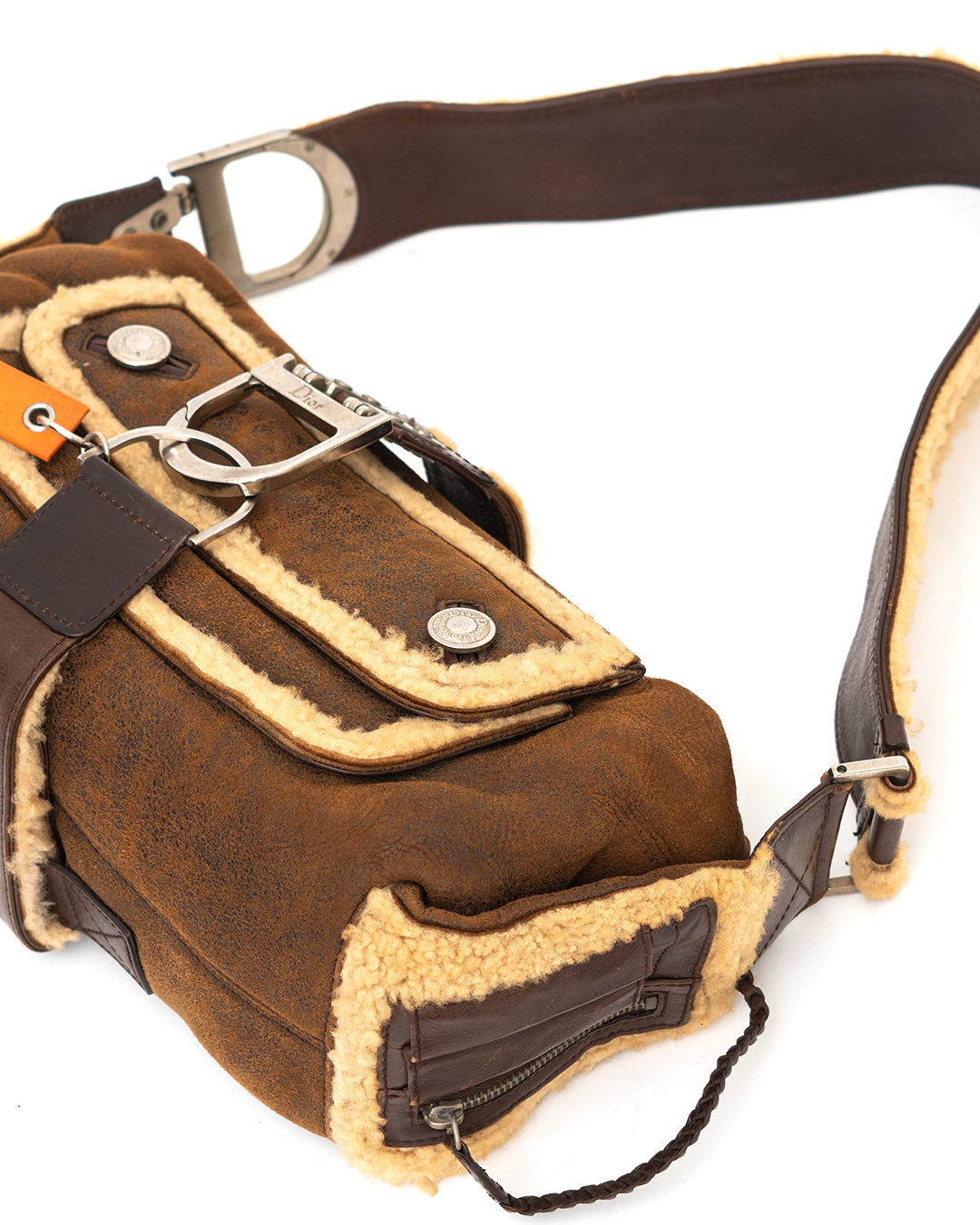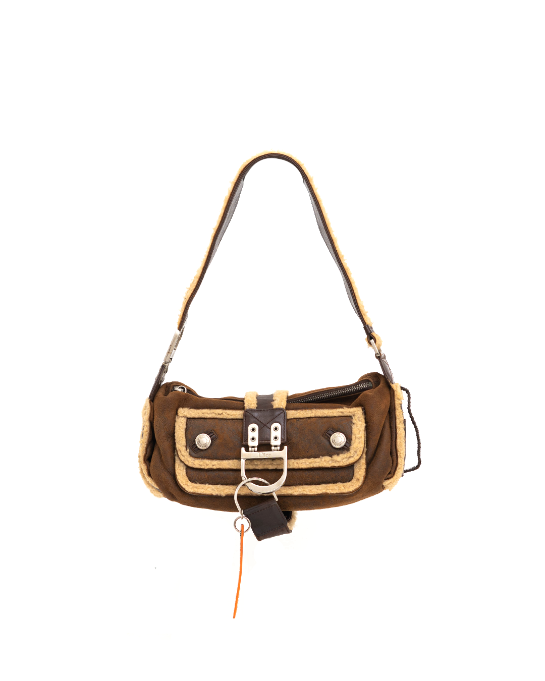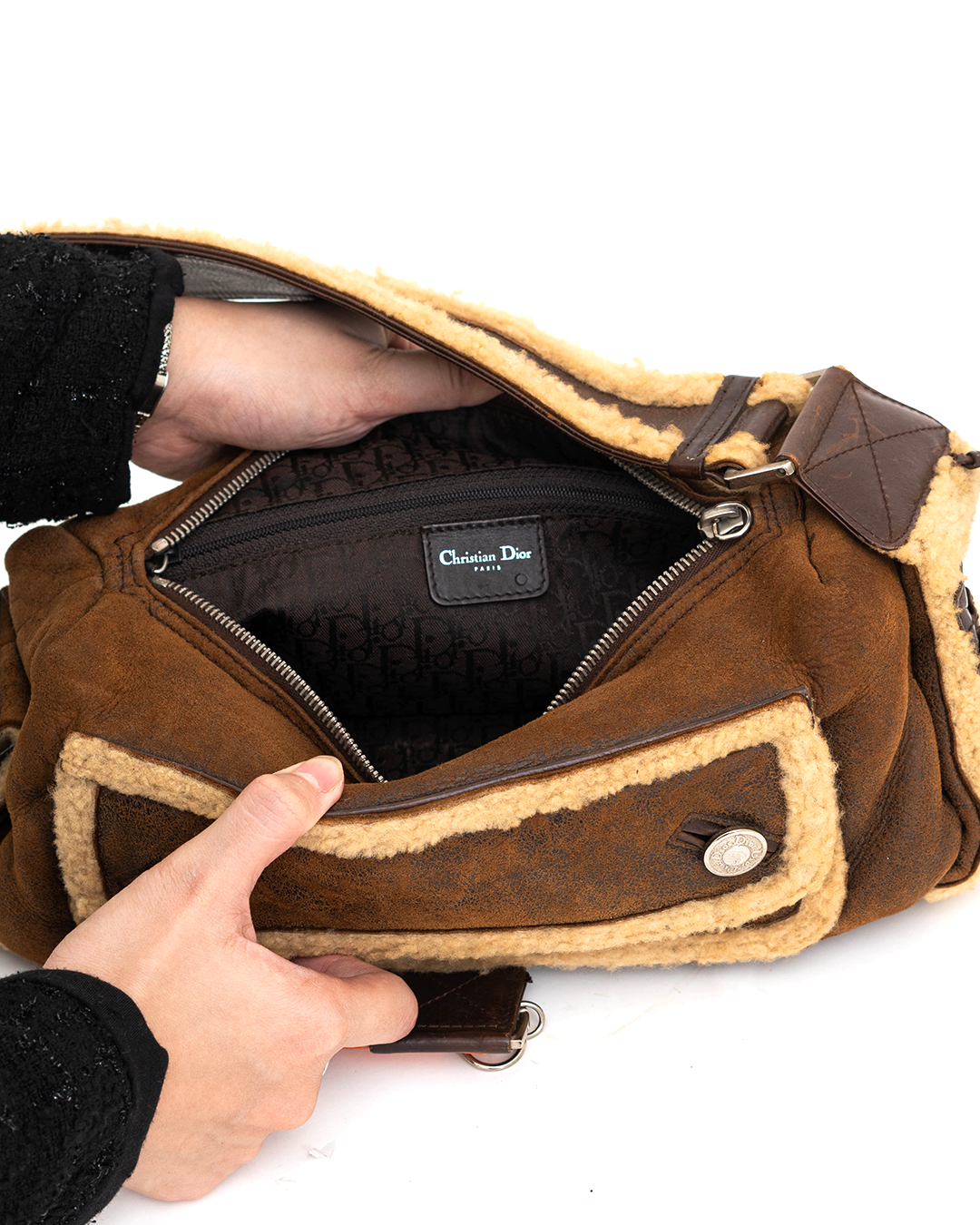 CHRISTIAN DIOR Flight Shoulder Brown Leather Suede & Beige Shearling