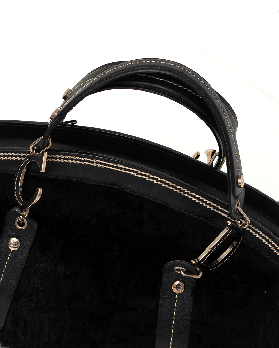 CHRISTIAN DIOR Black Fur and Leather Frame