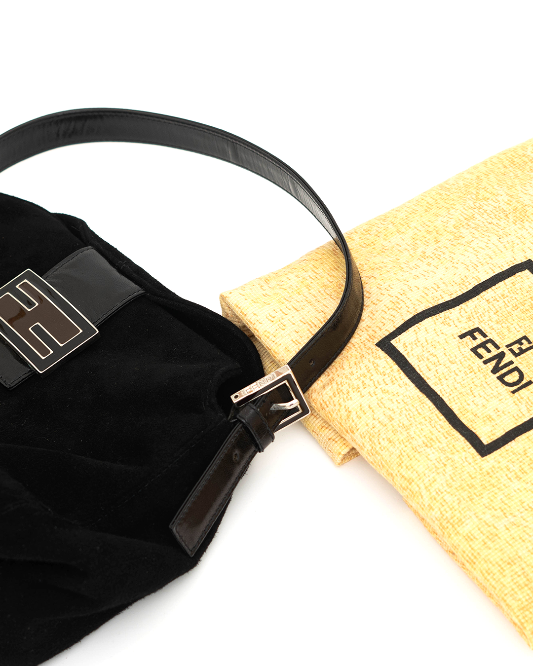 FENDI Black Baguette Flap Suede