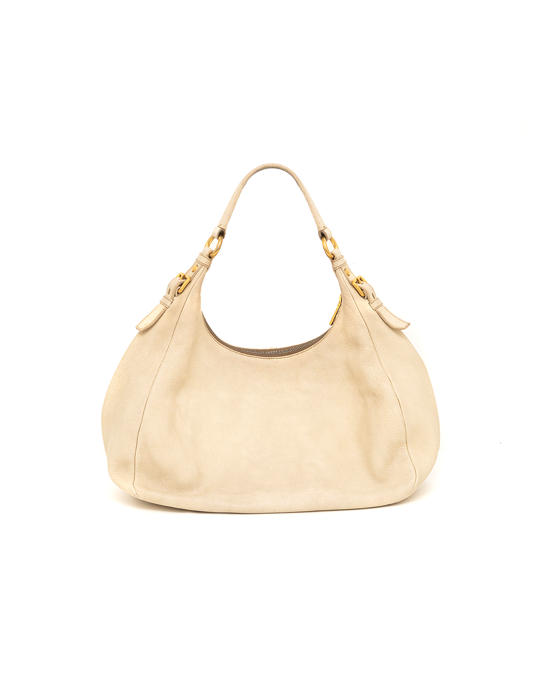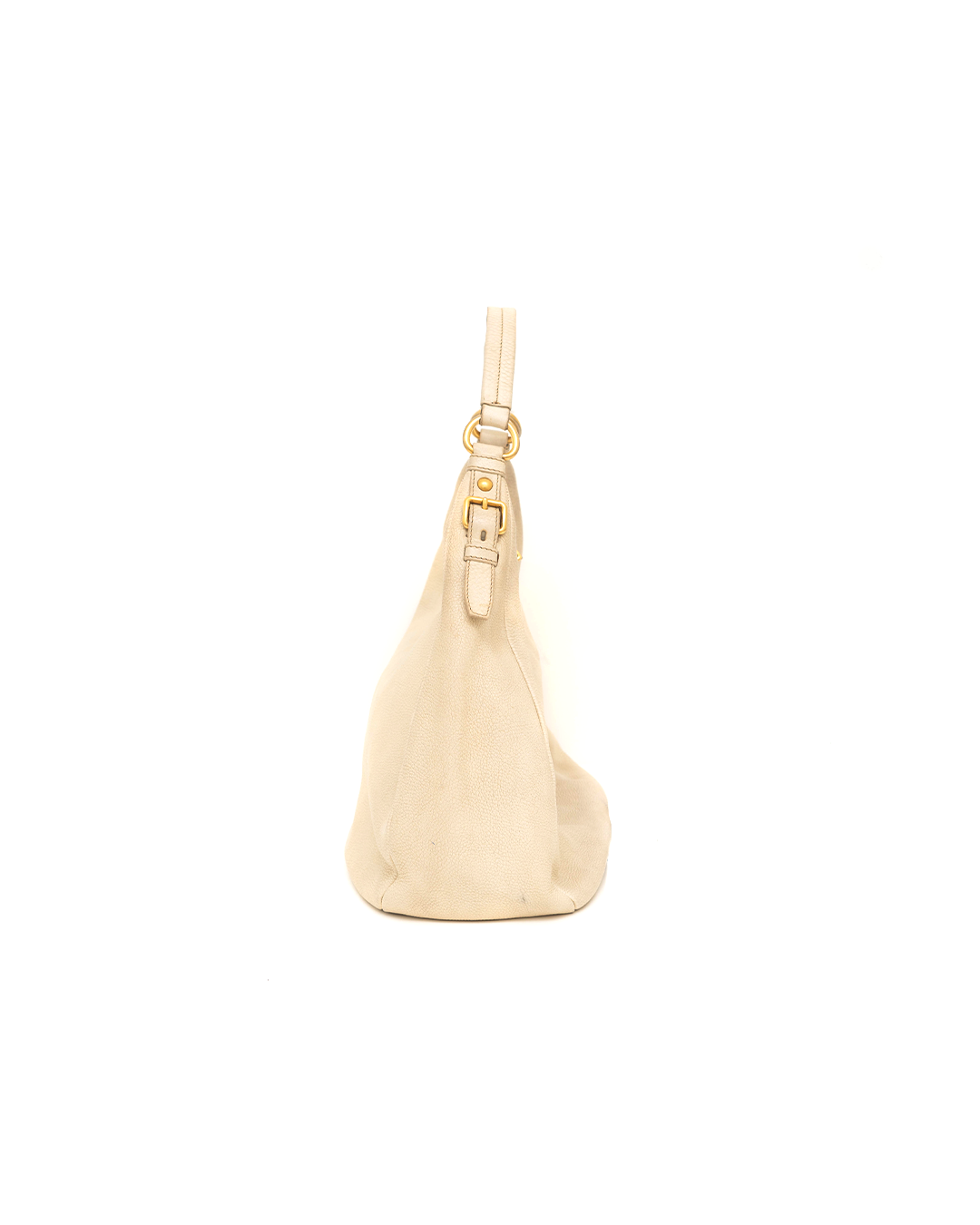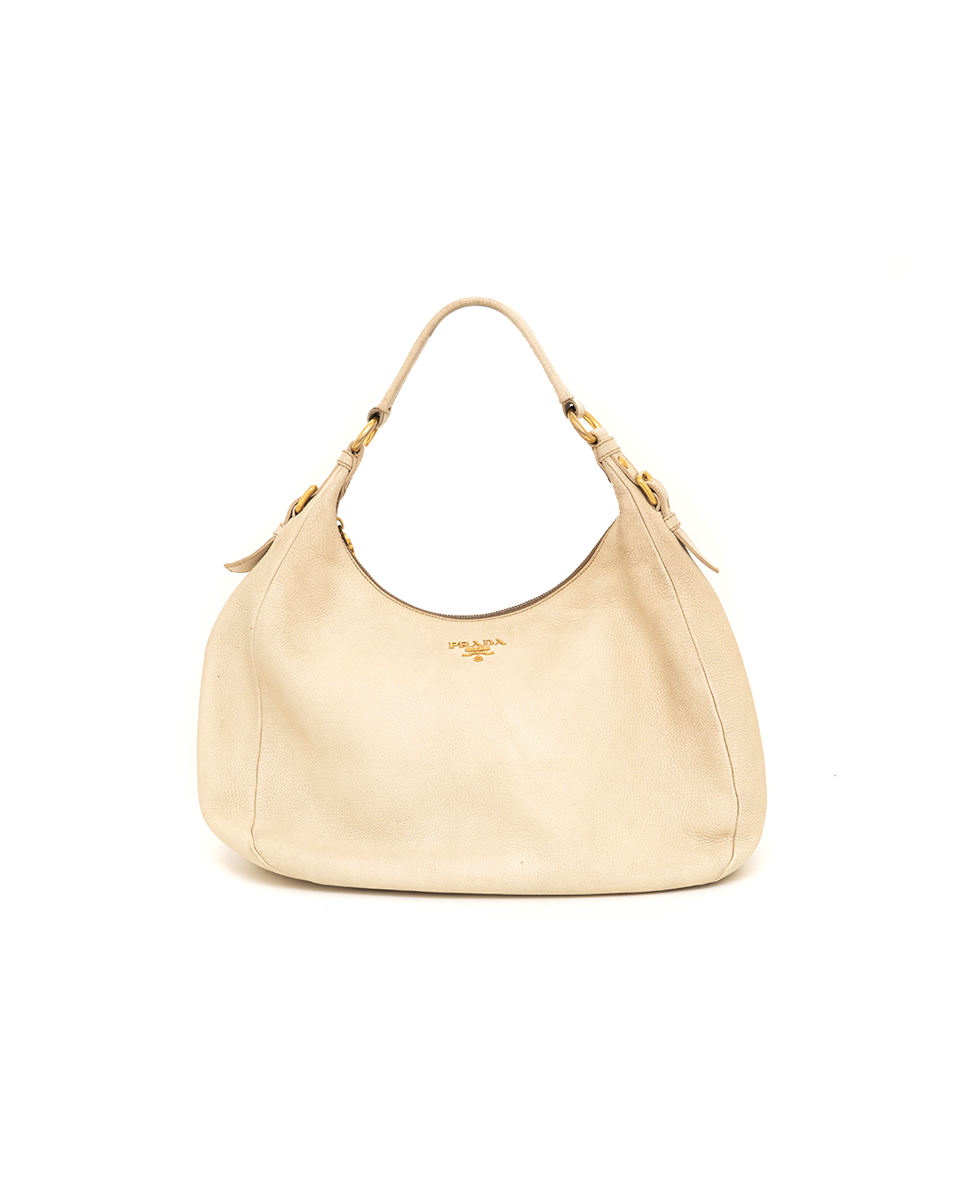 PRADA Ivory Grained Leather Hobo Bag