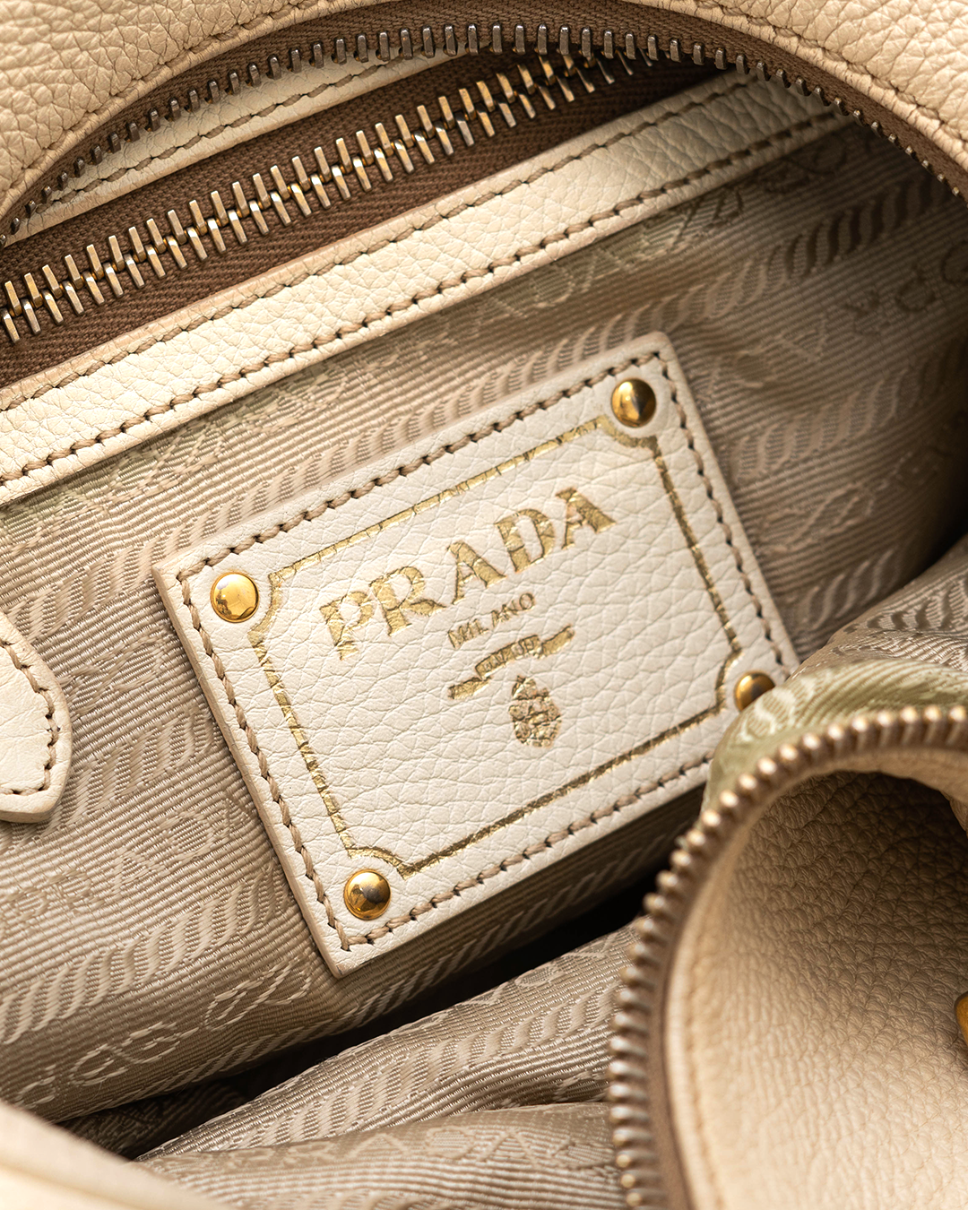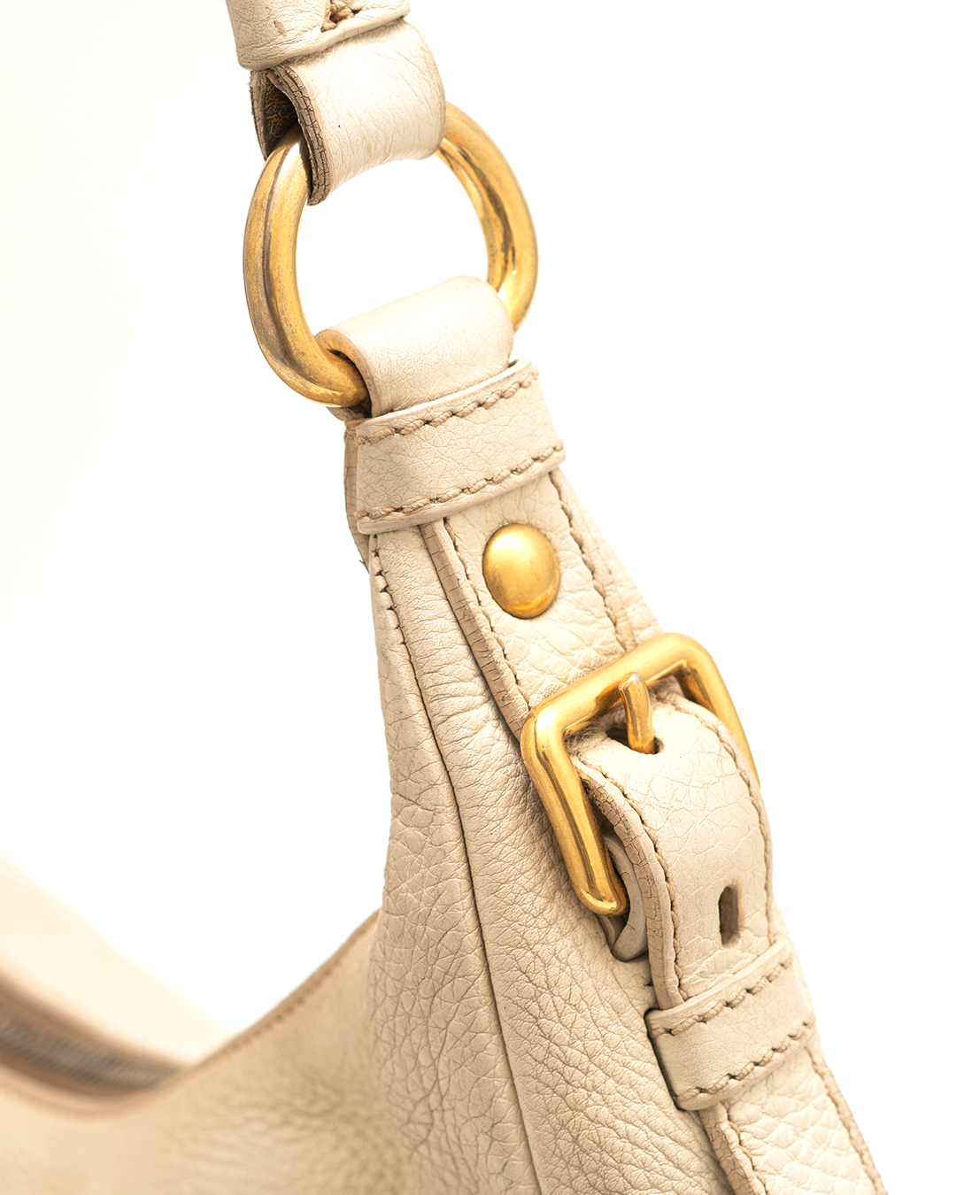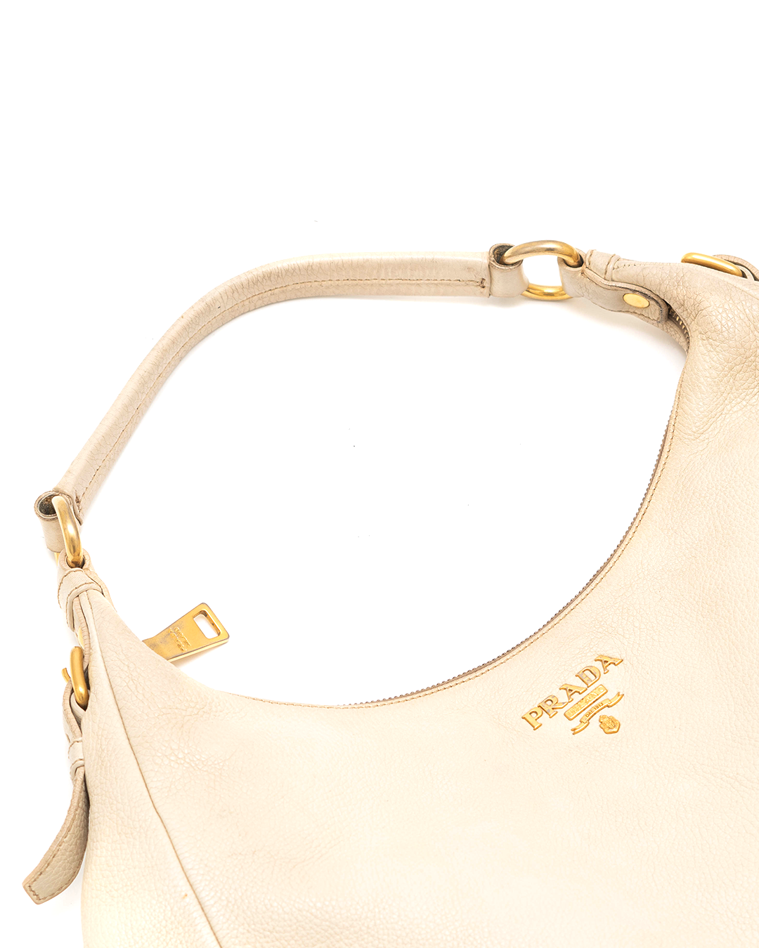 PRADA Ivory Grained Leather Hobo Bag